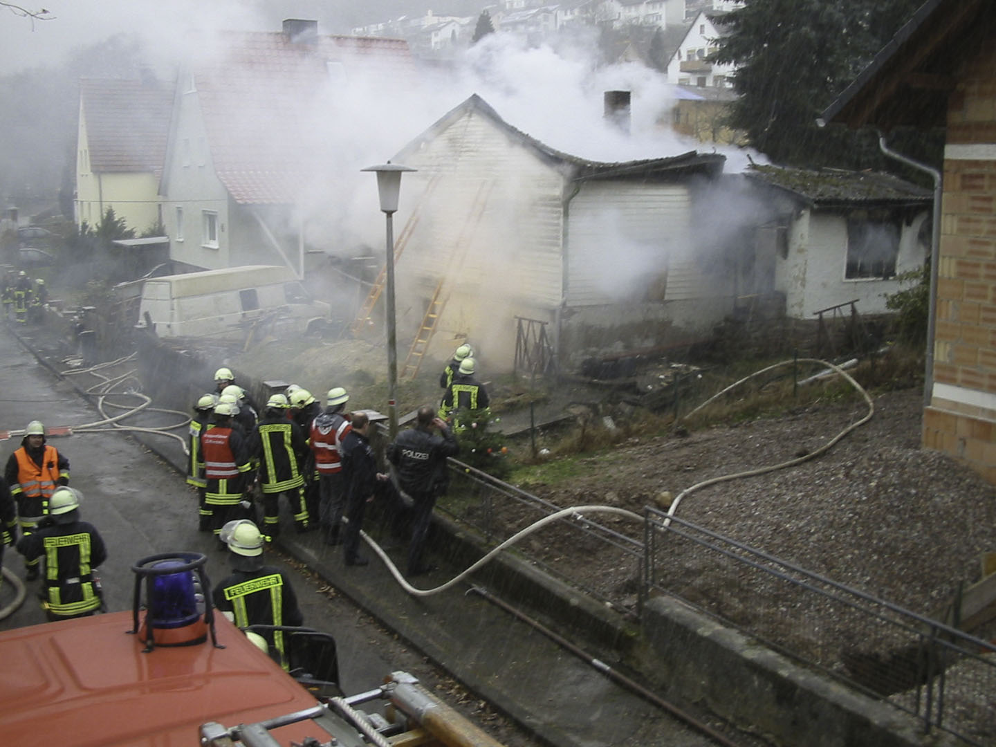 Blick auf die EInsatzstelle vom Dach des LF 16 Helmarshausen.