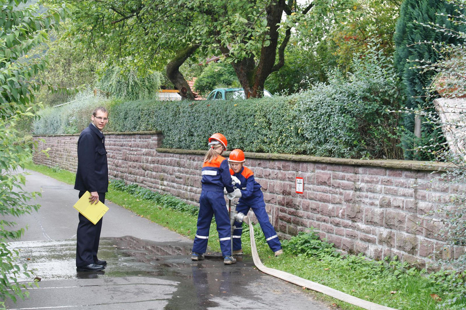 Setzen des Standrohrs - beobachtet vom stv. Stadtjugendwart.