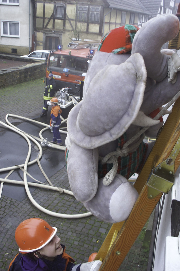 Aus dem verqualmten Zimmer im ersten Stock retteten die Kinder einen Elefanten.
